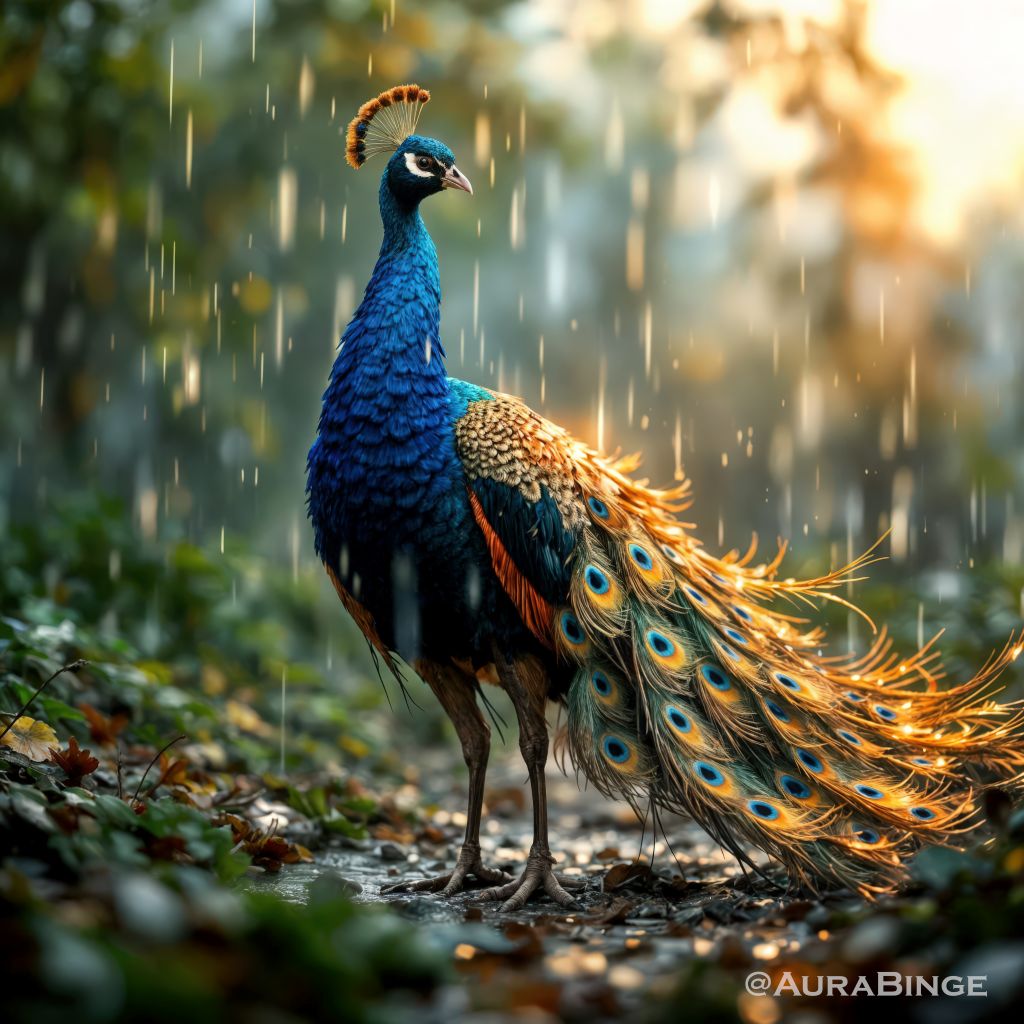 #RainDancerVibes #PeacockMagic #WildElegance #NatureUnfolded #RoyalInRain #Peacock #AuraBinge